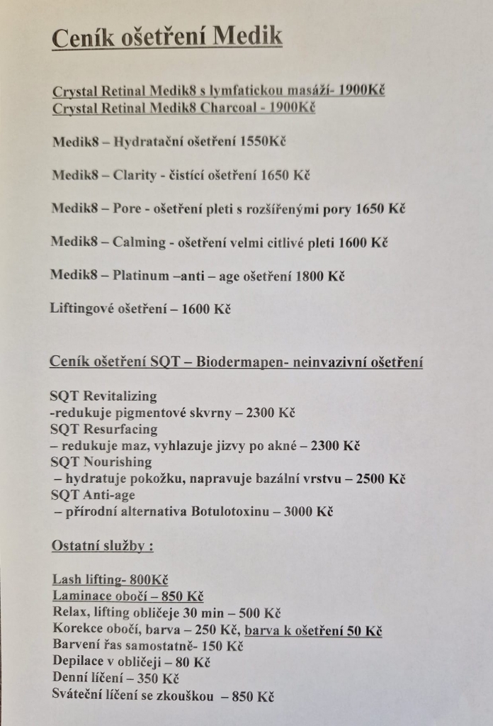| Ceník najdete v galerii :) | Kč |